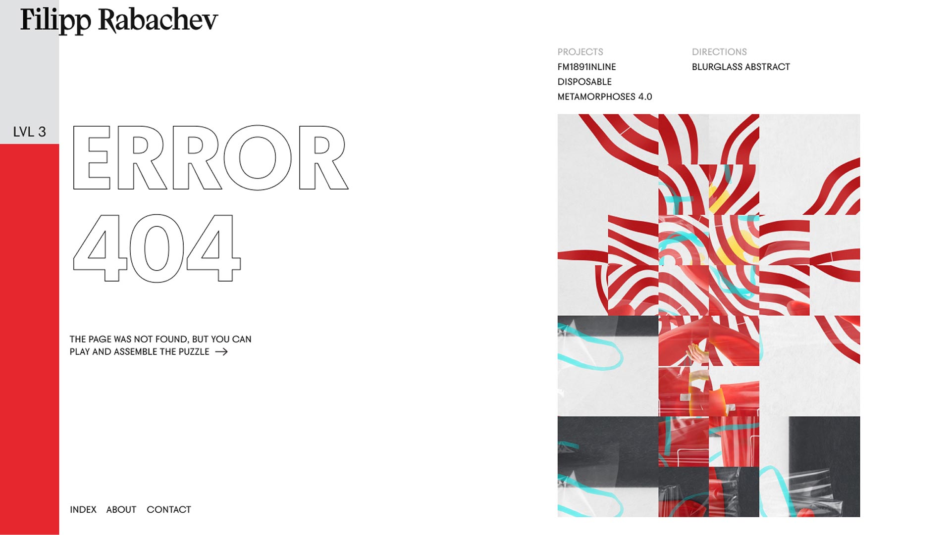 Вероятность попасть на несуществующую страницу минимальная, но нам все же очень хотелось отдельно разработать 404 страницу. И это не просто страница, а «залипательная» игра–пазл.